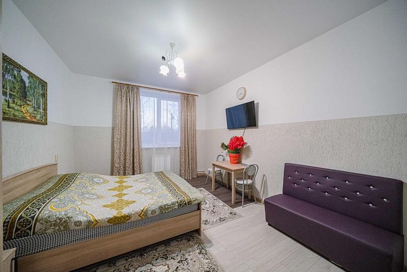 Однокомнатный номер для двух человек с одной двуспальной кроватью.