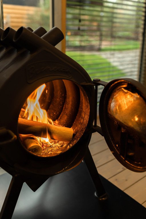 Печь с дровами и розжигом, современный телевизор со SMART TV, шкаф и комод для размещения личных вещей, кофемашина для капсульного кофе, шампура и решетка для мангала, дрова, уголь, спички для растопки печи или мангала, настольные игры, книги и журналы, игровая приставка, тёплые пледы для отдыха на террасе или в костровой зоне, стиральная машина.