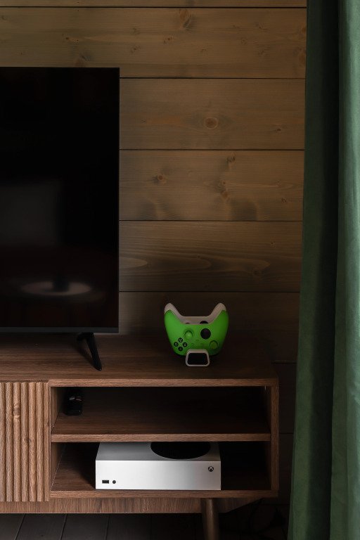 В доме три уютные комнаты, просторная кухня-гостиная и современный санузел. Дом полностью оборудован всем необходимым для комфортного проживания: от бытовой техники до настольных игр и книг. Гостям доступны теплые пледы для уютных вечеров на террасе, а также игровая приставка для развлечений в кругу семьи или друзей.