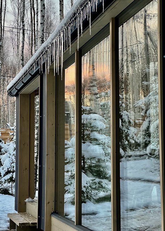 - мастер-спальня с двуспальной кроватью 180х200 и панорамным окном в смешанный лес и на купель Фурако;
