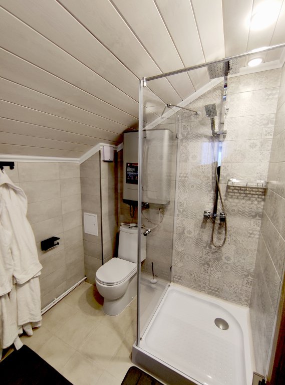 В номере есть телевизор и халат. Оснащение зависит от выбранной категории номера.