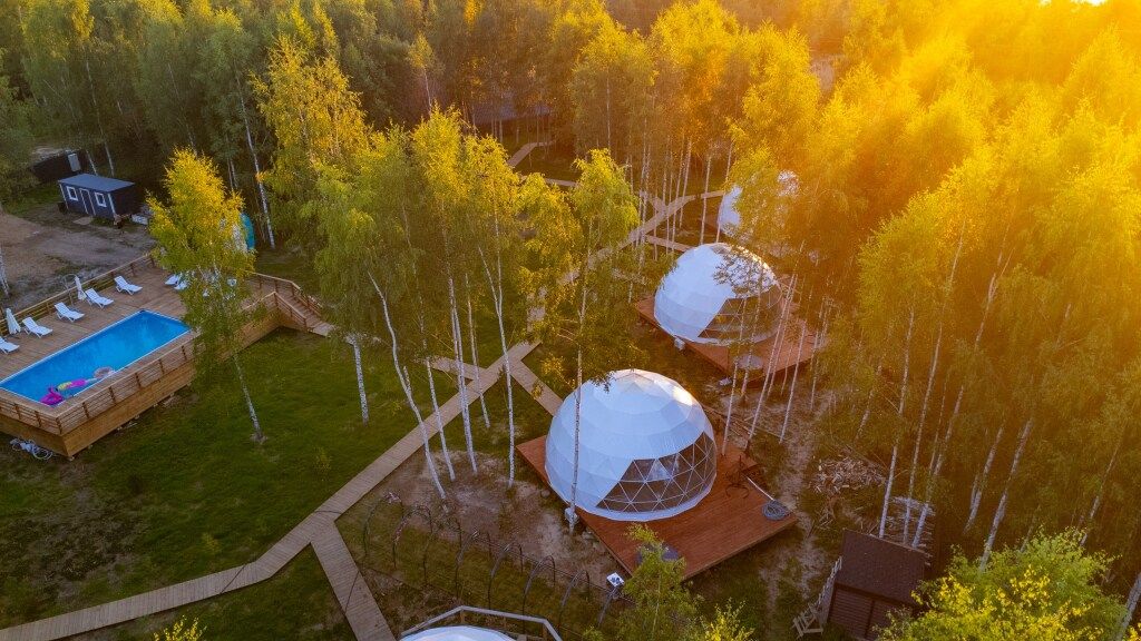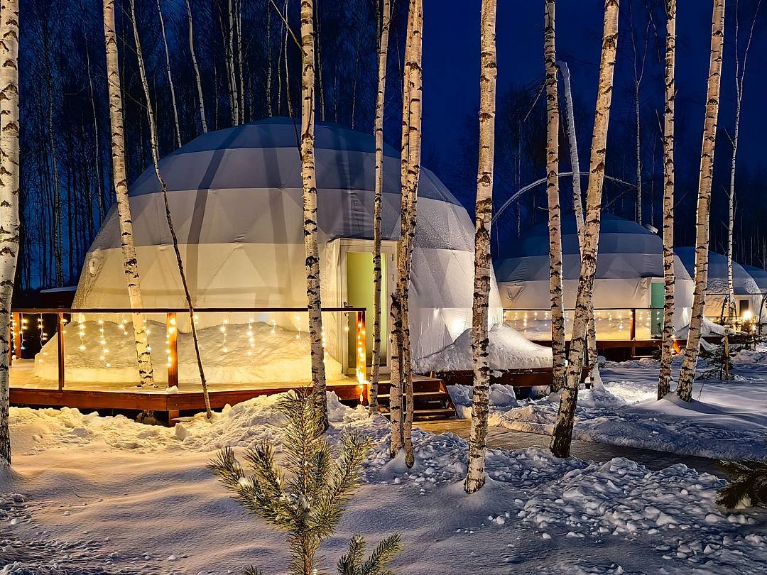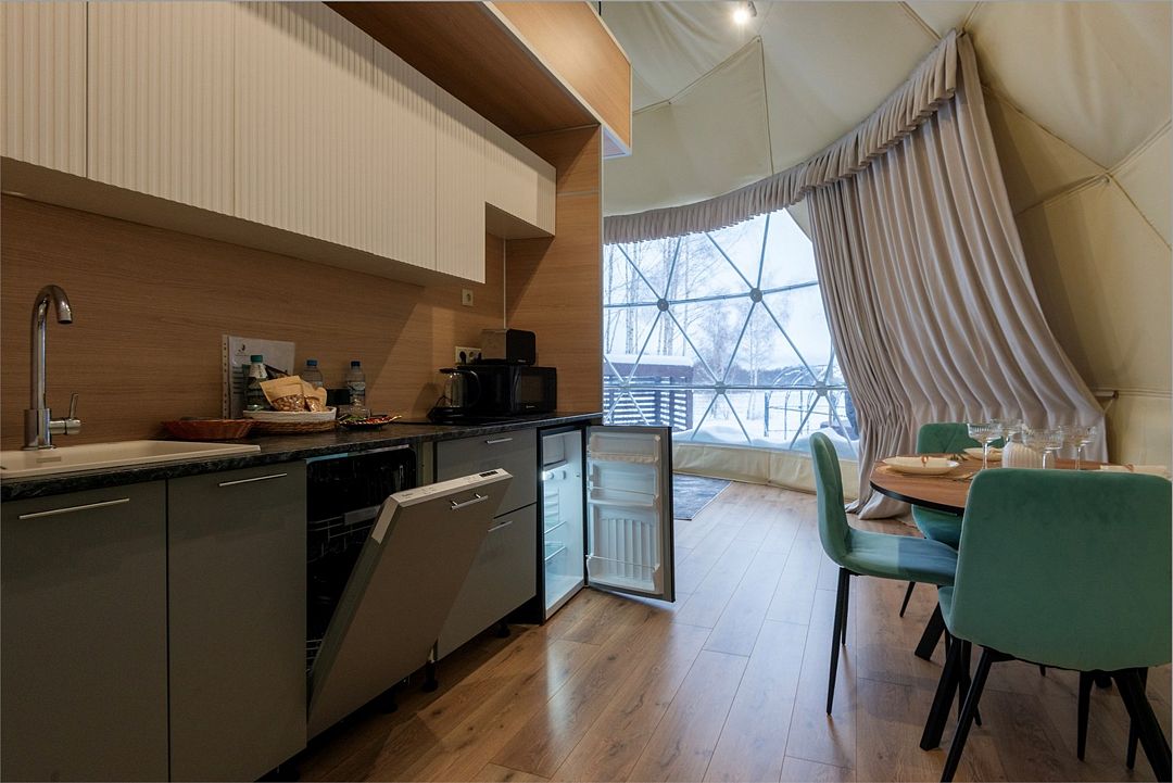 Дизайнерские купольные дома оснащены всем необходимым. Готовы к проживанию круглый год. В домах есть система кондиционирования и обогрева, теплые полы.
