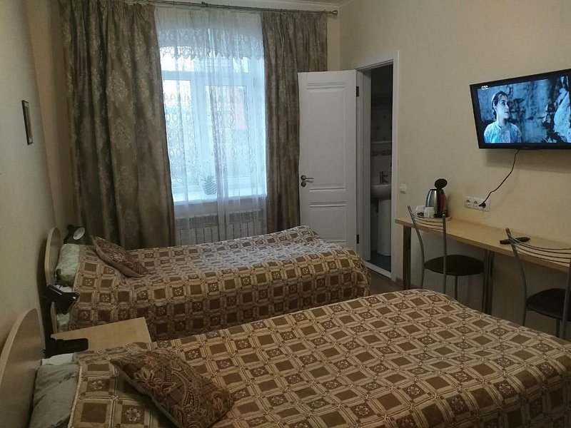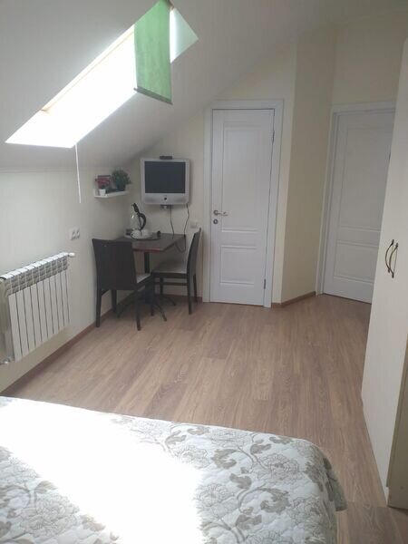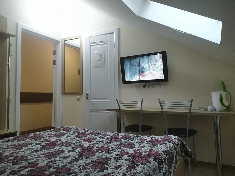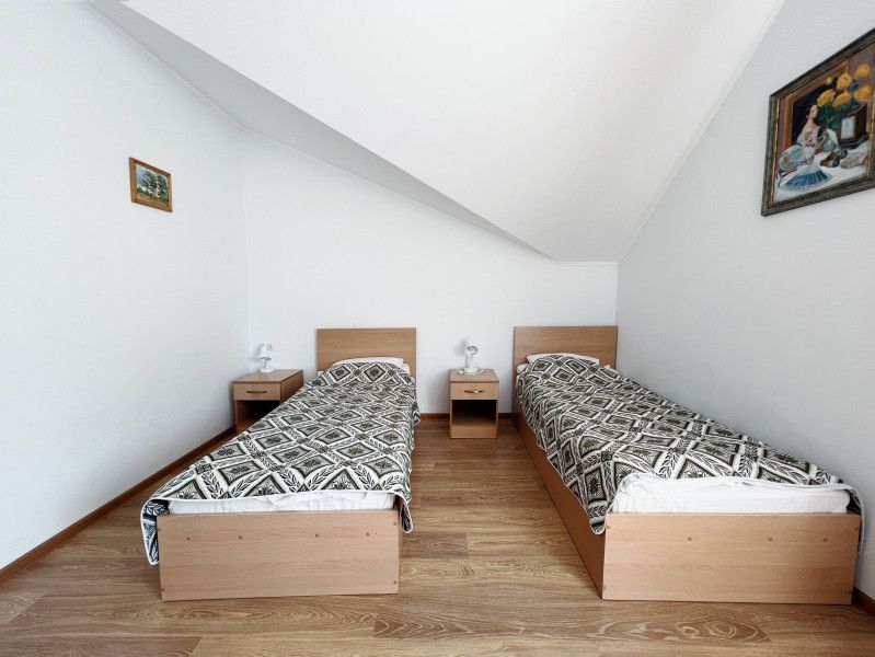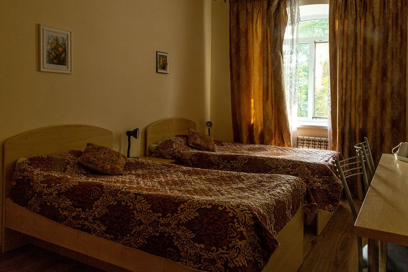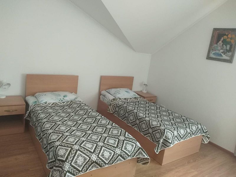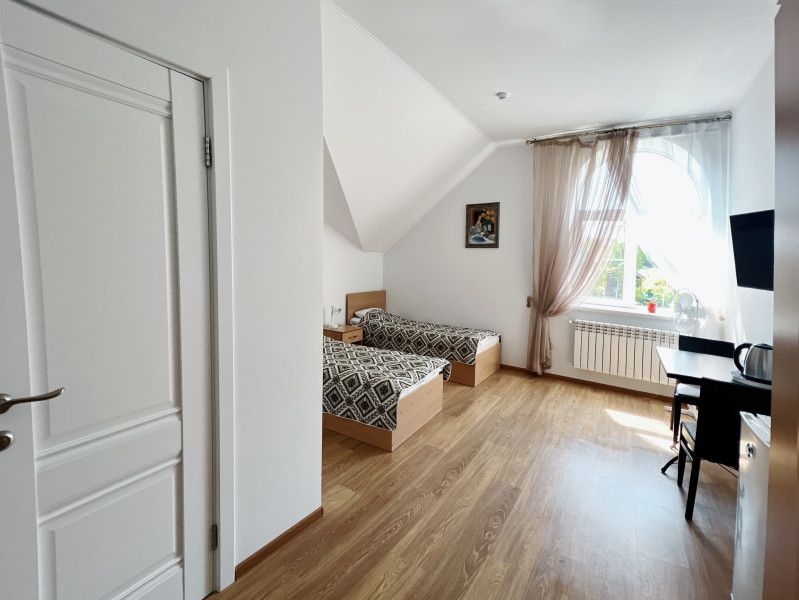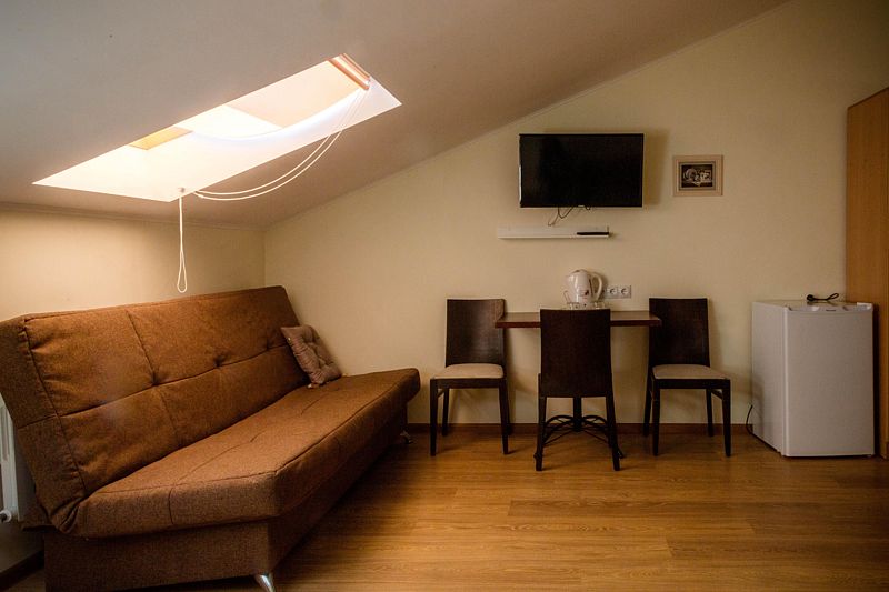 Двухместный номер с 2 кроватями 200x90 и холодильником, в этой комнате возможно размещение одного дополнительного места — раскладной кровати. Комната находится на 2-м мансардном этаже.