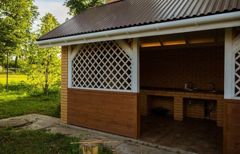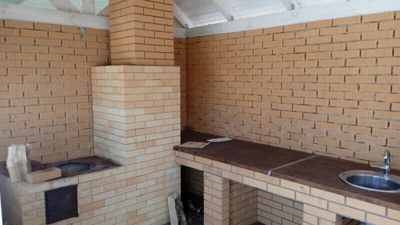 На крытой веранде большой обеденный стол и зона барбекю. Рядом, на улице, чан с подогревом воды дровами. Собственная авто-парковка на 4 автомобиля.