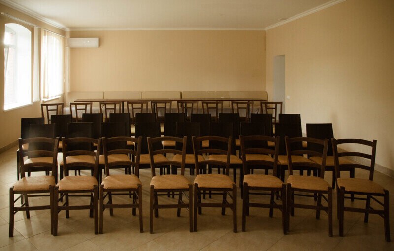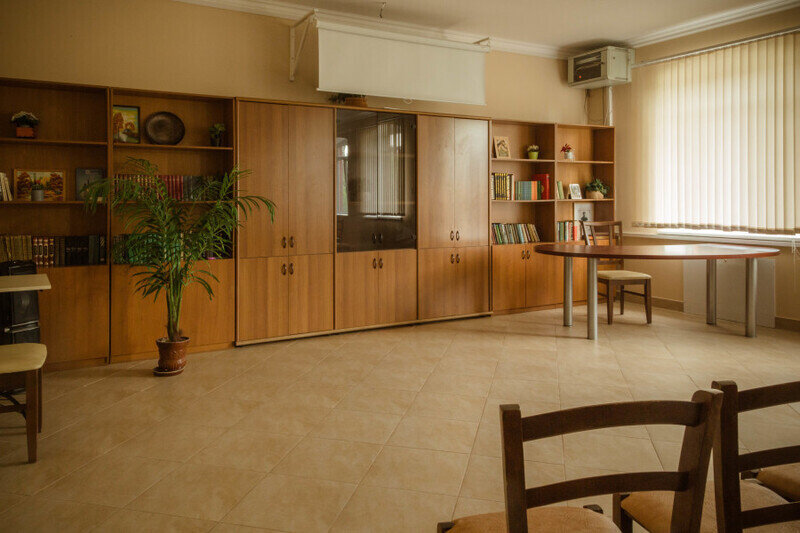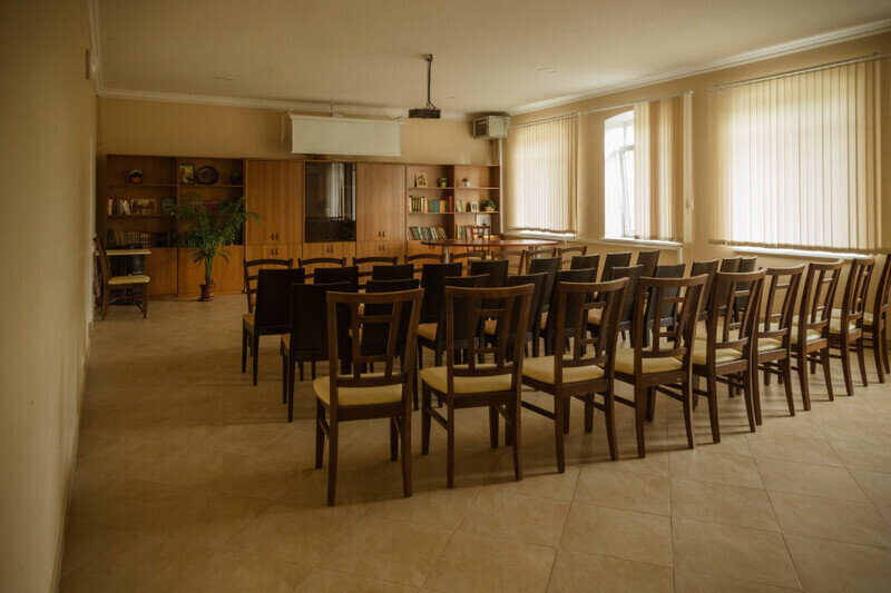 Вместимость 50 человек. Есть мощная музыкальная колонка, видео-проектор и большой плазменный телевизор.