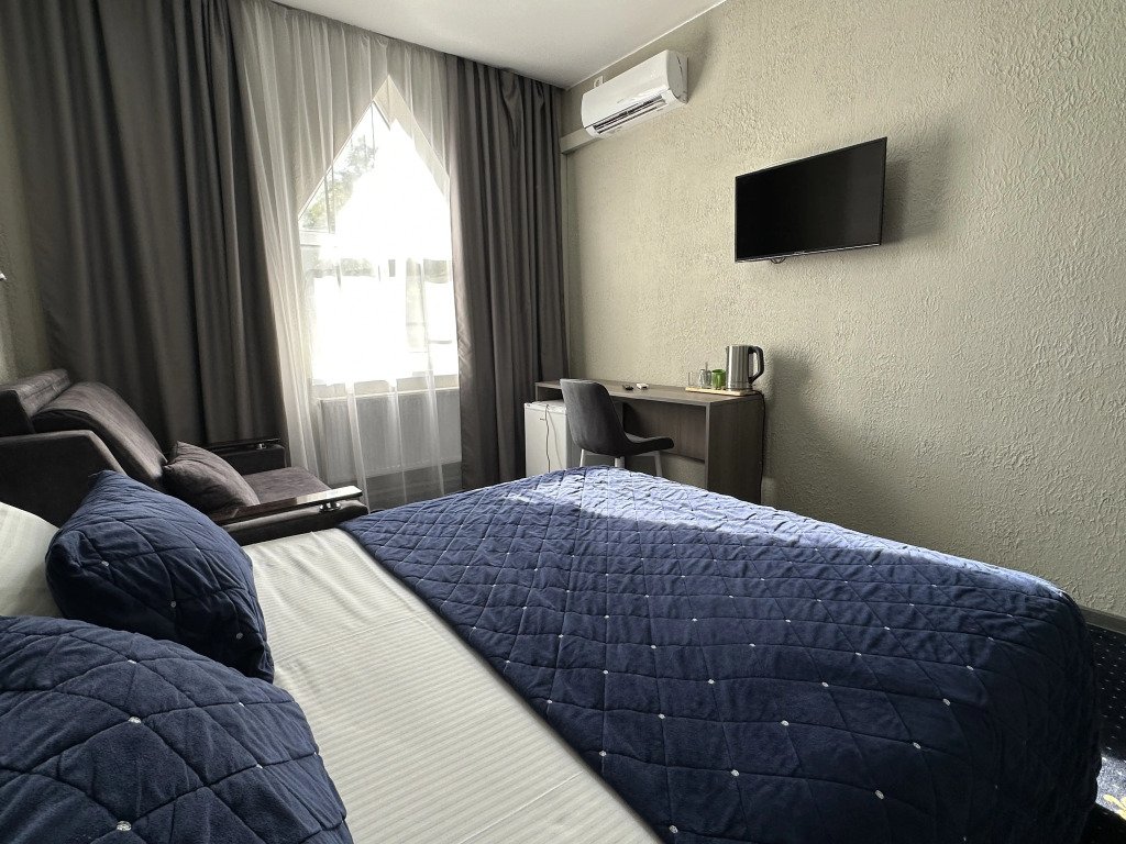 Чтобы вы могли отдохнуть после долгого дня, в номере есть телевизор. Оснащение зависит от выбранной категории номера.