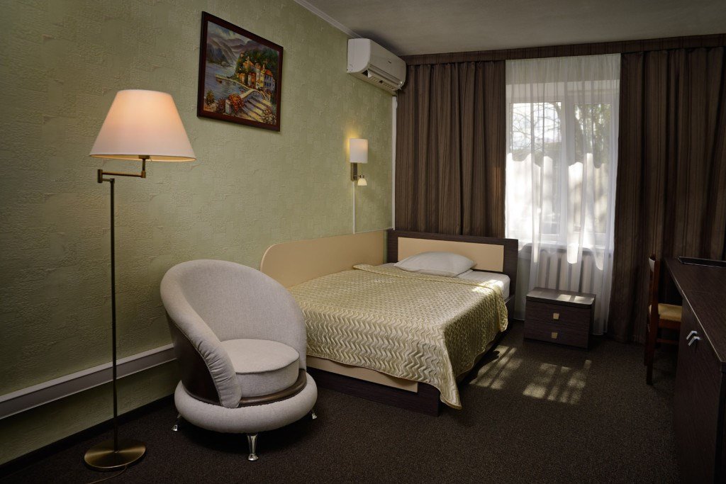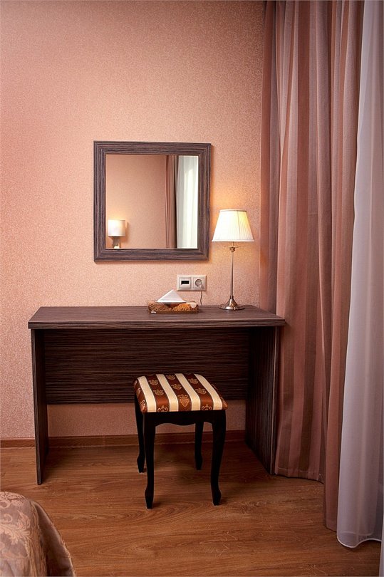 Wi-Fi, две телефонные линии, настольные лампы, фен, ванная комната, душевая кабина, банные полотенца, гигиенические средства, косметические средства, полутораспальная кровать, шкаф для одежды, гардеробная, вешалки, зеркало, набор посуды, обслуживание номеров, информационная карта, меню, чайник, унитаз, раковина, косметическое зеркало, отопление, вид на город, стаканы, столовые приборы, стул, туалетные средства, сплит-система, цифровое тв, телевизор с плоским экраном, мини-холодильник, гостиничная парфюмерия, номер для некурящих, пуфик, рабочий стол, антибактериальное средство для рукВ номере