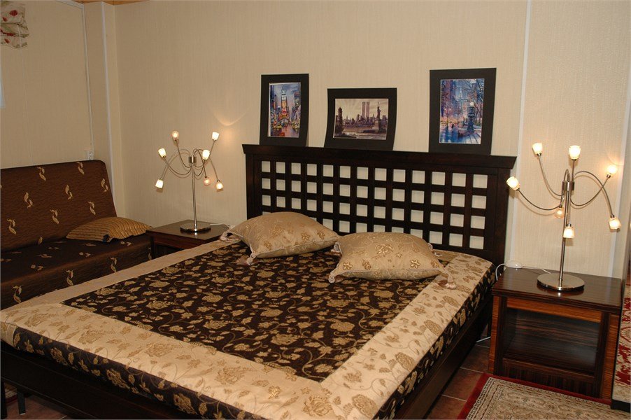 Двухместная комната с двуспальной кроватью и диваном, который раскладывается. Допускается вместимость до 4 человек.