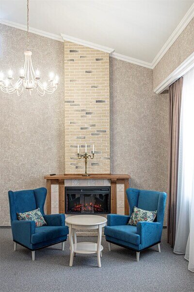 Номер люкс премиум класса площадью 45 кв.м. С кроватью размера king-size c камином и бутылочкой игристого подарит невероятное ощущение роскоши и комфорта. Чайная станция с чаем и кофе, бутилированная вода. Ванная комната с ванной укомплектована туалетно-косметическими принадлежностями, халатами и тапочками . В номере мини-холодильник, телевизор с плоским экраном, кондиционер и сейф. В стоимость номера включен континентальный завтрак по меню, охраняемая парковка под видеонаблюдением.Услуги и удобства