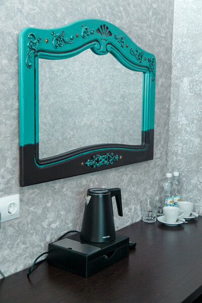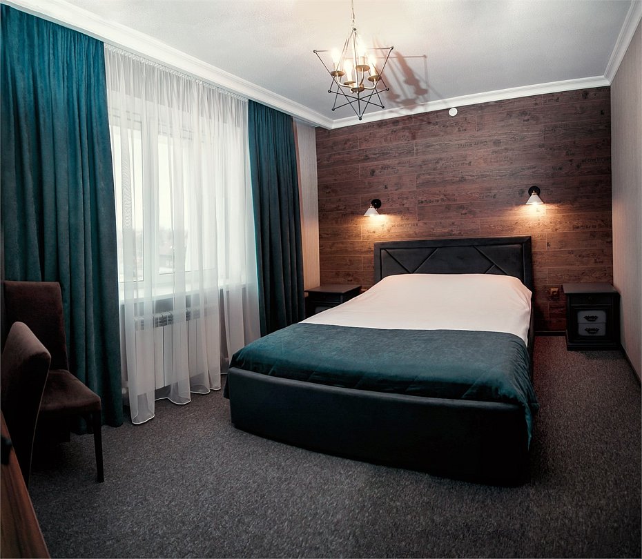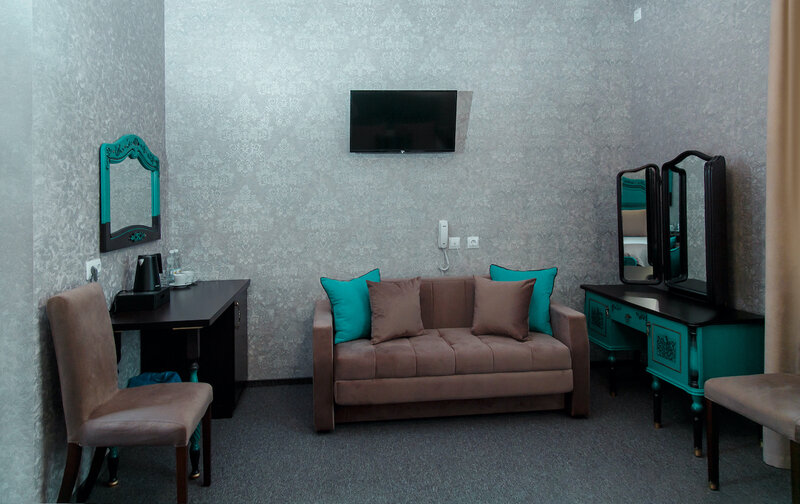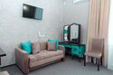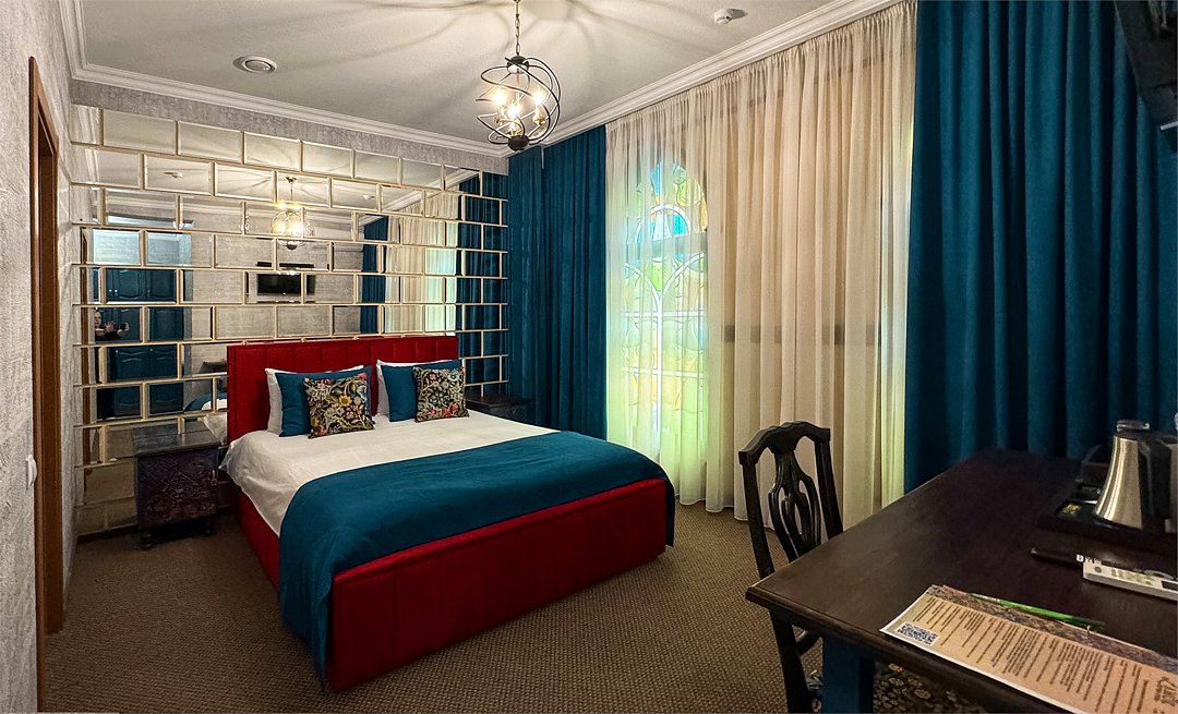 Номер категории полулюкс с эксклюзивной дизайнерской мебелью, выполненной на заказ в бирюзово-коричневых тонах располагается на втором этаже бутик-отеля . Площадь номера 26кв.м.В номере большая кровать 160*200см .В номере мини-холодильник ,телевизор ,сплит система, чайная станция с чаем и кофе, бутилированная вода. Просторная ванная комната укомплектована туалетно-косметическими принадлежностями ,халатами и тапочками . В стоимость номера включен континентальный завтрак по меню, охраняемая парковка под видеонаблюдениемУслуги и удобства