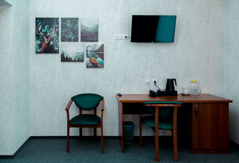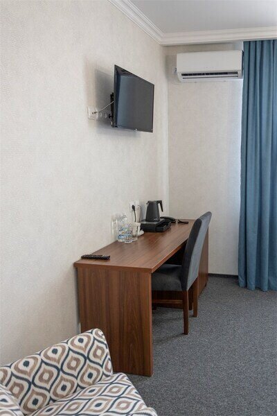 Wi-Fi, кондиционер, фен, ванная комната, ванна или душевая кабина, тапочки, косметические средства, шкаф для одежды, вешалки, зеркало, унитаз, раковина, кулер на этаже, стул, стол, сплит-система, цифровое тв, телевизор с плоским экраном, мини-холодильник, рабочий стол, можно с питомцамиВ номере
