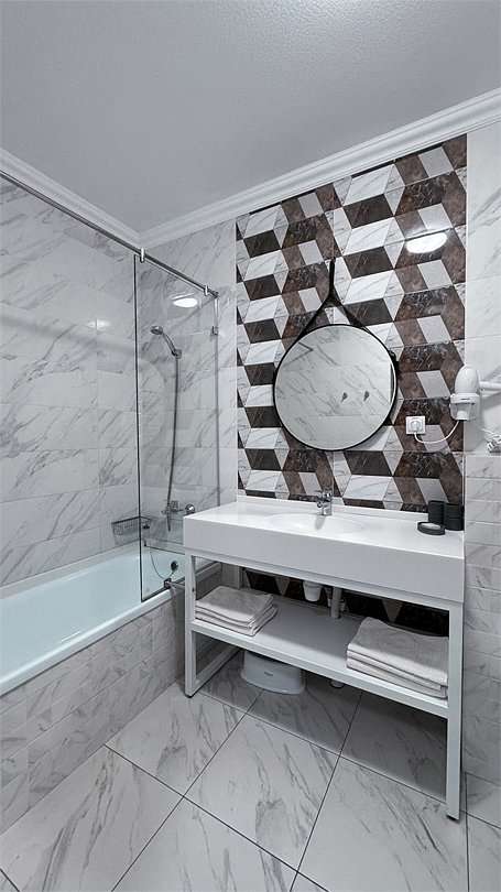 ванная комната, ванна, санузел, халаты, тапочки, косметические средства, раковина, душ, вид на город, панорамные окна, цифровое тв, телевизор с плоским экраном, можно с питомцамиВ номере