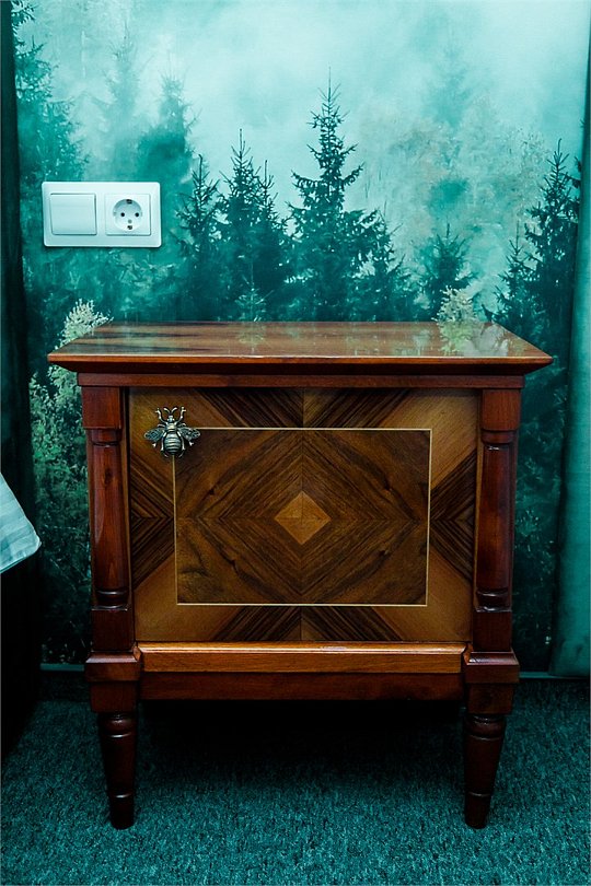 кровать «King size», тумбы, стулья, шкаф для одежды, зеркало, комод, эксклюзивная мебель, мягкая мебель, стул, диван-кровать, раскладной диван, антикварная мебель, можно с питомцамиВ номере