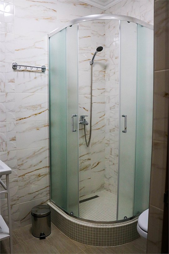 3)в душевой нужно поменять герметик -он в плесени.И в одном из номеров,что мы жили -текла вода на пол.Нам в принципе без разницы,можно потерпеть,но ваши же белоснежные полотенца приходится класть на пол,чтоб не поскользнуться и не стоять в луже.