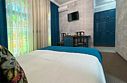 Номер выполнен в светло-голубых тонах, с двумя односпальными кроватями 90*200см или одной большой двухспальной кроватью 180*200 см . Номер располагается на 2 этаже нового корпуса бутик отеля. Площадь номера 26 кв.м. В номере мини-холодильник ,телевизор ,сплит система, чайная станция с чаем и кофе, бутилированная вода. Просторная ванная комната укомплектована туалетно-косметическими принадлежностями ,халатами и тапочками . В стоимость номера включен континентальный завтрак по меню, охраняемая парковка под видеонаблюдениемУслуги и удобства