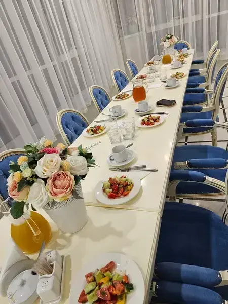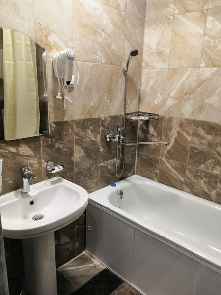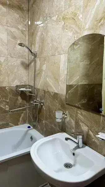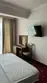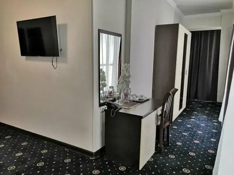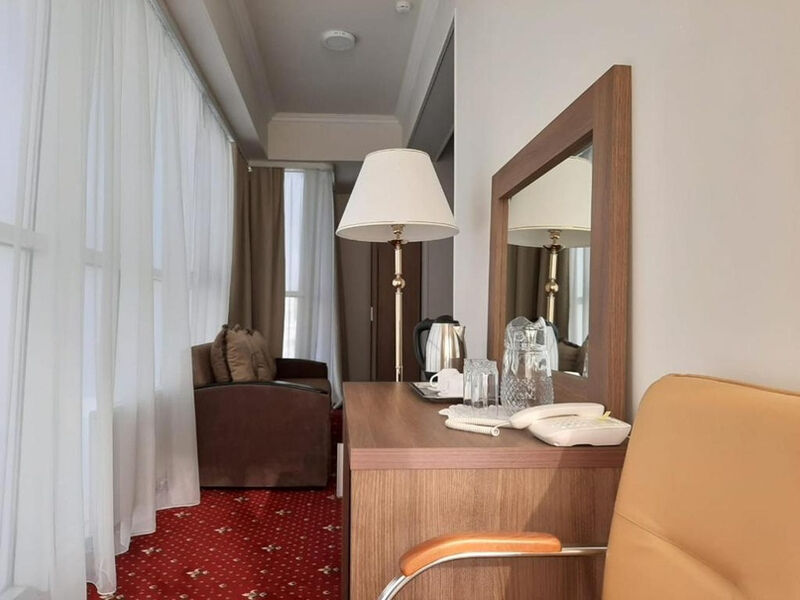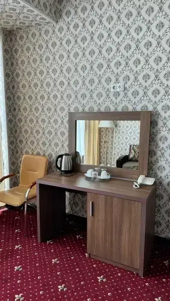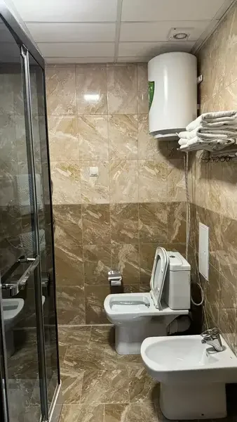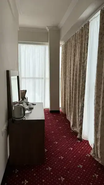 Короткий отпуск с друзьямиДвоякое впечатлениеОстанавливались в этом отеле на 2 ночевки вместе с группой во время экскурсионного тура. Визуально отель производит очень достойное впечатление. В номере 1520: 1.Роскошный вид на мечеть. 2.Номер просторный. 3.Есть холодильник, чайник и фен, но фен очень маломощный, волосы им быстро высушить не получится. 4.Розетки не слишком удобно расположены (одна за спинкой кровати, другая возле шкафа). 5.В шкафу махровые халаты (не пригодились) и одноразовые тапочки. 6.При заезде было 2 по 0.5 воды. 7.Телевизор и кондиционер были в порядке. 8.Уборка хромает: при заезде на унитазе обнаружен курчавый волос с того самого места, также чёрные волосы были на раковине. На стаканах были грязные разводы (пришлось перемывать). 9.Очень рекомендую руководству озаботиться созданием бортиков на раковине и на ванной, т.к. вода попадая на плоскость, прилегающую к стене, стекает на пол и делает лужу, из-за постоянной влаги на полу очень быстро может завестись плесень. 10.Матрас был продавлен с обеих сторон, комфортно спалось только строго посередине. 11.Биде настолько близко установлено к стене, что воспользоваться им невозможно. 12.Не выдергивайте каждый раз вилку электр. полотенцесушителя из розетки, из-за этого вилка вырвана из гнезда, чтобы всё заработало нужно лишь кнопку возле вилки нажать. 13.Завтрак это отдельная песня: персонал кухни косо смотрит с нескрываемым недовольством на постояльцев, позволяет себе разглядывать посетителей и обсуждать их между собой как базарные бабы,позволяет себе высказывать гостям отеля фразы "у нас на каждого не более 200 рублей положено",типа посетители дохрена съедают, хотя еда строго выдаётся на тарелках (каша+2 мини-сосиски+2 жареных яйца или гречка с котлетой и салатом), в 1-й день в свободном доступе было масло, сыр и круассаны со сгущенкой,но во 2-й день персонал решил,что мы их объедаем и каждому выделили 1 крохотный кусочек масла,чтобы не объелись,2 кусочка сыра и 2 маленьких круассана,но в принципе если съедать все что "выдают", то наесться досыта можно. На просьбу дать второй чай или что-то во втором экземпляре персонал реагирует с большим недовольством и даже не пытается его скрывать, словно они всё из своего кармана оплачивают. Ножи были пластиковые на завтраке, спасибо что хотя бы тарелки и чашки были не пластиковые. Худшего отношения персонала на завтраке я ещё не встречала и надеюсь больше никогда не встречу. 14.Возле выхода из отеля есть кулер с водой. 15. На втором этаже отеля есть приличная кондитерская Париж, в которой много вкусной еды кроме сладостей.