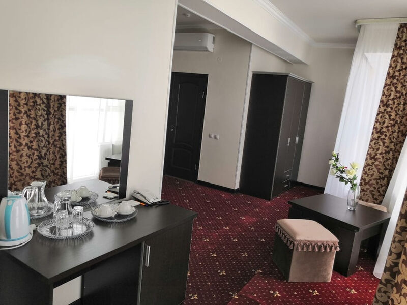 Персонал нормальный, вежливый. Да, уборка не очень, но когда ты фактически только ночуешь в отеле, это не столь актуально. Если повезёт с номером, то будет прекрасный вид на красивую, в узбекском стиле мечеть, которая называется «Гордость мусульман». В качестве «побочного эффекта» от соседства с ней - громкие азаны (призывы на молитву). Кому-то они, наверное, мешают отдыхать, а по нам так только придают эдакого восточного колорита…:)