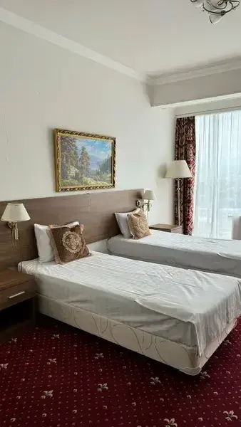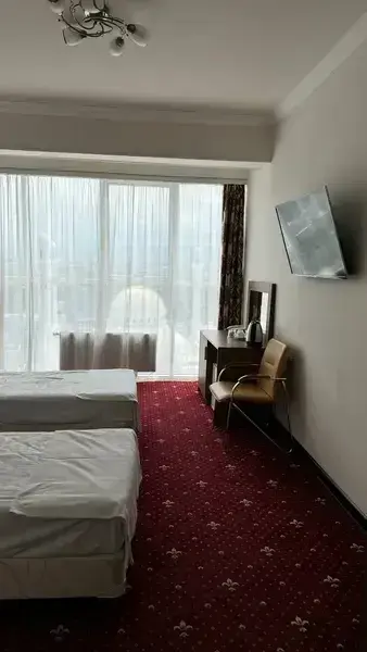 Гостиница предлагает отдыхающим комфортное размещение в номерах различной категории. Все номера обставлены качественной мебелью, оснащены кондиционером и телевизором и всеми удобствами, необходимыми для приятного отдыха. Просторные душевые кабины, высокое качество сантехники, а также туалетные принадлежности премиум-класса — все вместе гарантирует максимальный комфорт. Красивый вид на город открывается из окон.