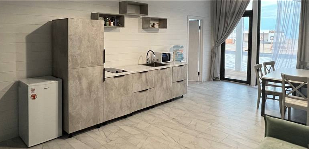 - для тех, кто предпочитает готовить сам — чайник, посуда, мойка и небольшое пространство для перекуса;