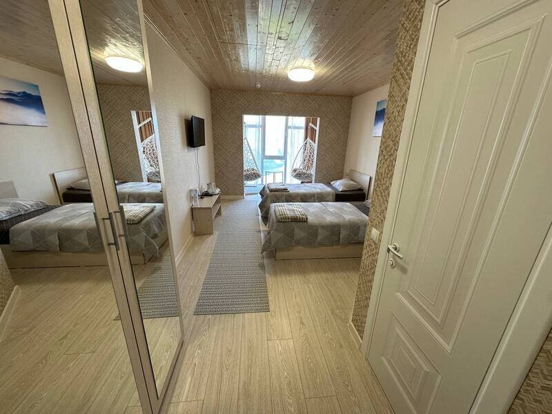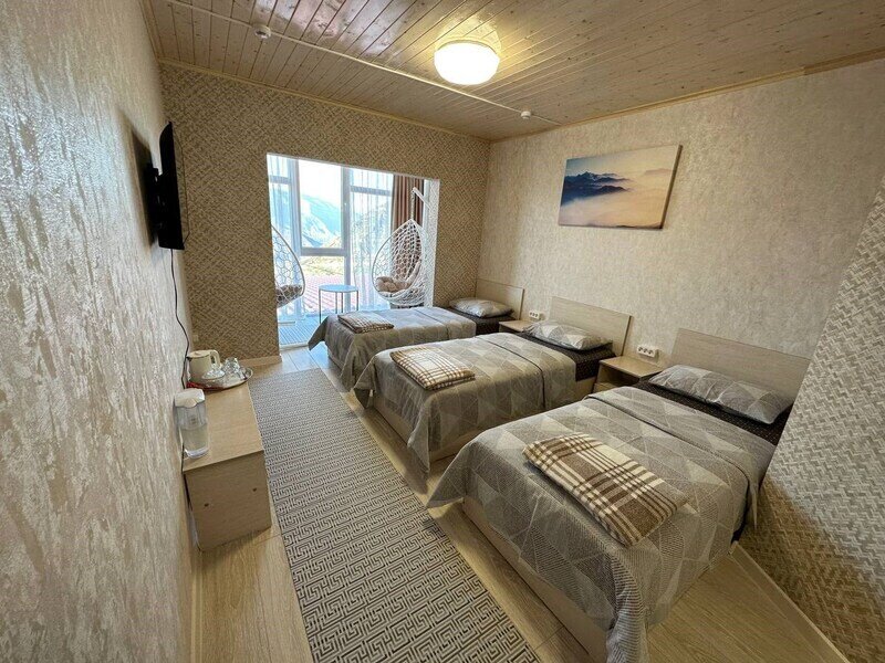 Трехместный номер в отеле «Гоор в Горах» представляет собой просторное и комфортабельное помещение, разработанное для проживания трех гостей. Этот номер обеспечивает удобство и расслабление, чтобы вы могли наслаждаться своим пребыванием в горах. Внутри трехместного номера вы найдете три отдельные кровати. Кровати оборудованы комфортными матрасами и качественным постельным бельем, чтобы гарантировать вам приятный и спокойный сон. Номер также оснащен местом для отдыха, включающим стол и стулья, где вы можете расслабиться, почитать, выпить чашечку кофе или пообщаться с компаньонами по путешествию. Это пространство также может служить рабочей зоной, если вам нужно работать или использовать ноутбук.