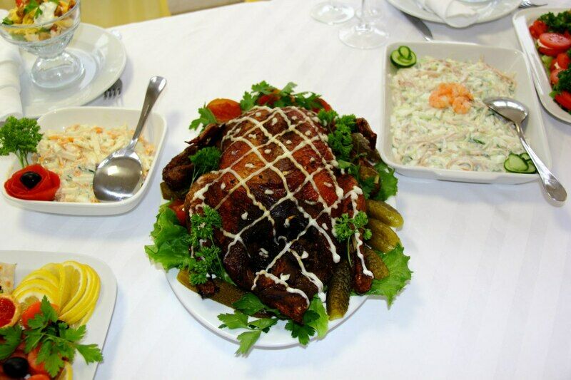 Ресторан базы отдыха может предложить блюда как русской, так и европейской кухни. Желающие могут заказать для себя сбалансированное, комплексное питание.