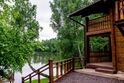 Одноэтажный дом выполнен из кедра, имеет мансарду с видом на озеро.