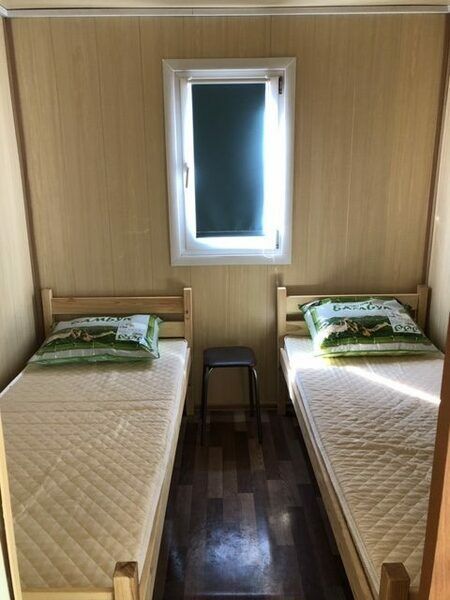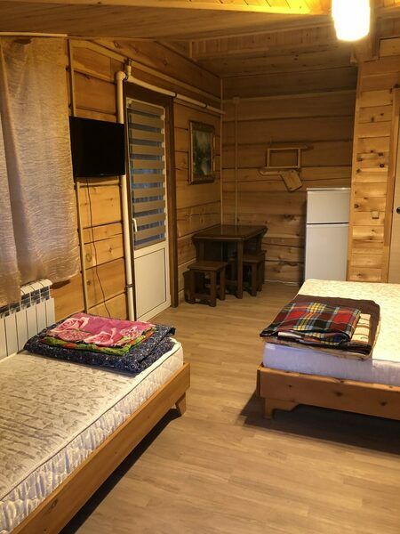 Уютные домики с 1 жилой комнатой, кухней, холодильником, 2 двухъярусными кроватями.