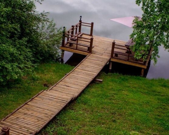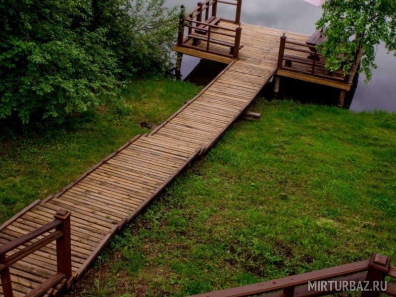 На берегу озера оборудован небольшой причал со столом и скамейками, где так же можно отдохнуть и понырять в воду.