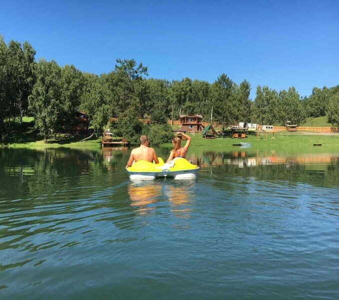 На базе отдыха гости могут взять на прокат один из катамаранов и отправиться в неспешную прогулку по водной глади озера, созерцая красоту местной природы.