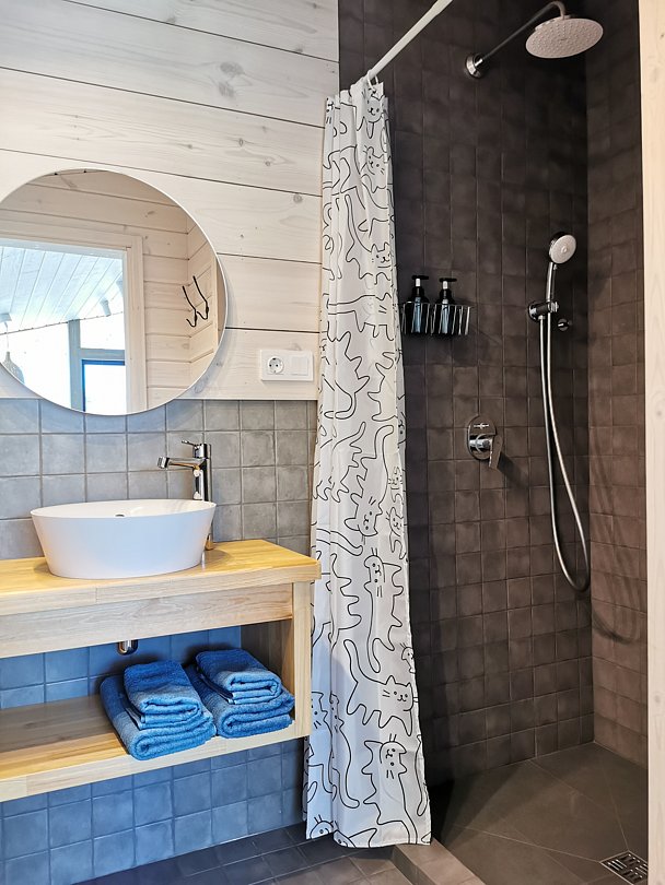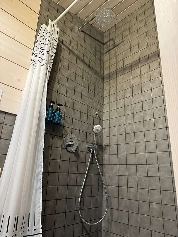 - тёплый пол в душевой, обогреватели в холодное время года;
