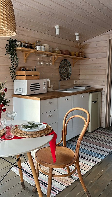 - оборудованная кухня: посуда, индукционная плитка, холодильник, чайник, СВЧ, посудомойка;