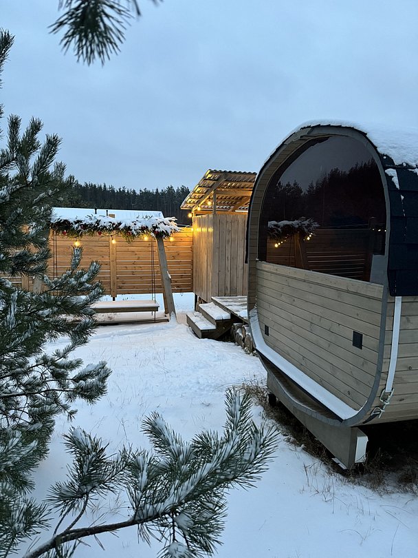 Гостям предлагаются два уютных варианта размещения: Дача Лес и Дача Поле. Оба домика оборудованы всем необходимым для вашего отдыха. Дачи построены с очень качественной, экологичной отделкой и стильным дизайном. Около каждого домика установлен сибирский банный чан на дровах. Неподалеку расположена уютная баня с панорамным окном на лес. Здесь вы можете насладиться чистым воздухом, пением птиц и живописными видами природы.