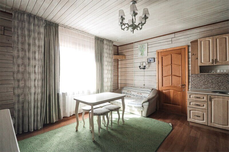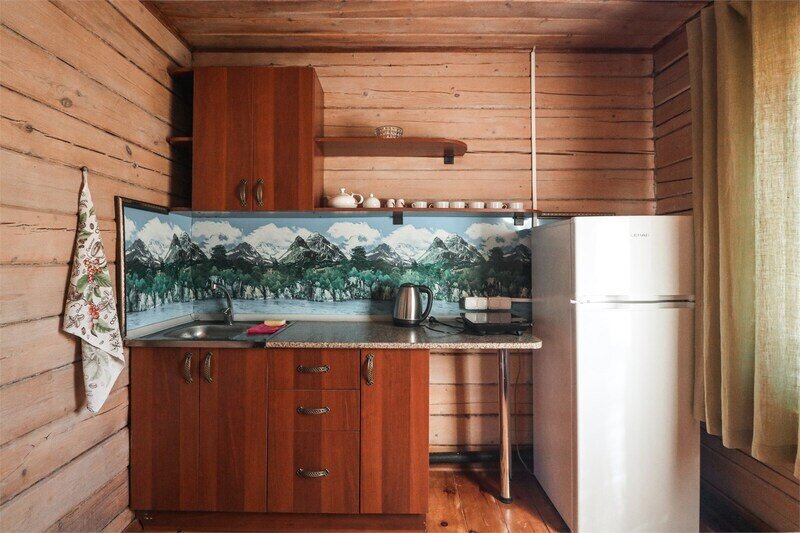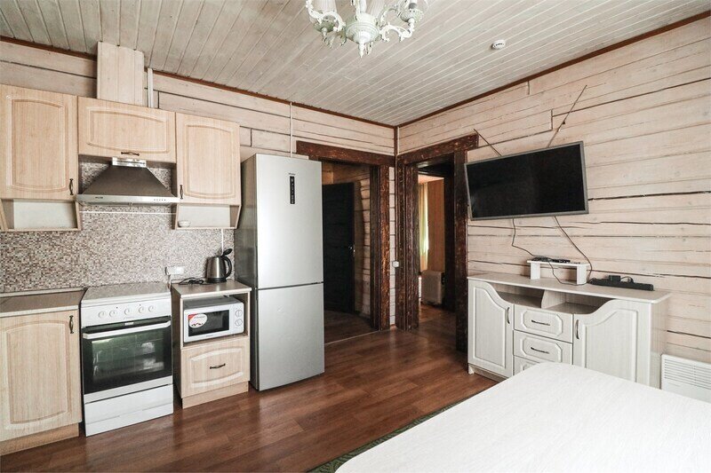 К проживанию гостей подготовлены комфортабельные домики со всем необходимым. В них обустроены уютные спальни, имеется гостиная зона с холодильником и чайником, ванная комната. В некоторых домах есть телевизор. А чтобы всегда оставаться на связи, предоставляется доступ к Wi-Fi.