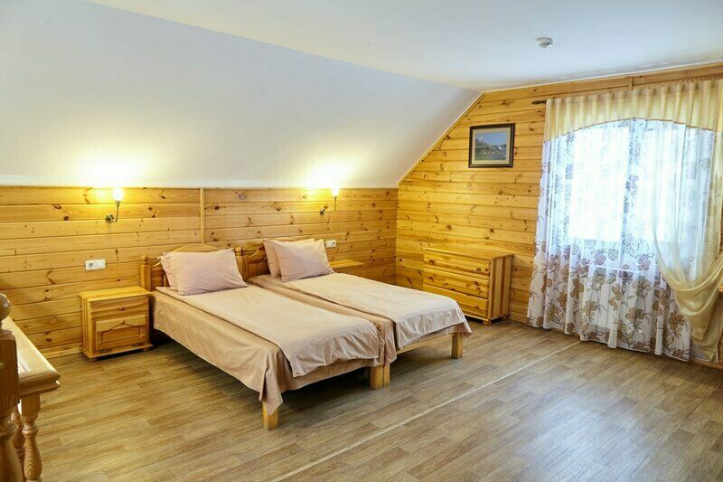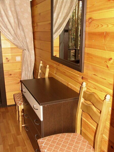Семейный отдыхДостоинстваКонечно, для шести человек дом будет очень тесным. Нас было трое, был ребёнок. Понравилось расположение этой базы отдыха, место очень красивое, имеются площадки для детей.