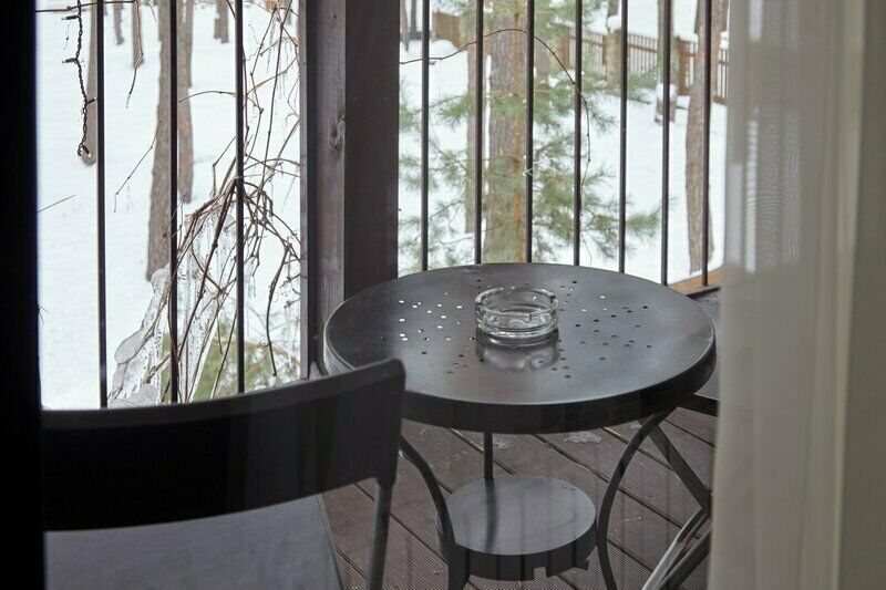 Из номера есть выход на просторный балкон со столом и стульями для отдыха.