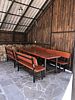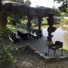 - теплая беседка-сруб на берегу пруда с мангалом, обеденным залом и пикниковой площадкой;