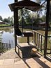 - теплая беседка с панорамным остеклением на берегу пруда с мангалом, обеденным залом, камином и пикниковой площадкой;
