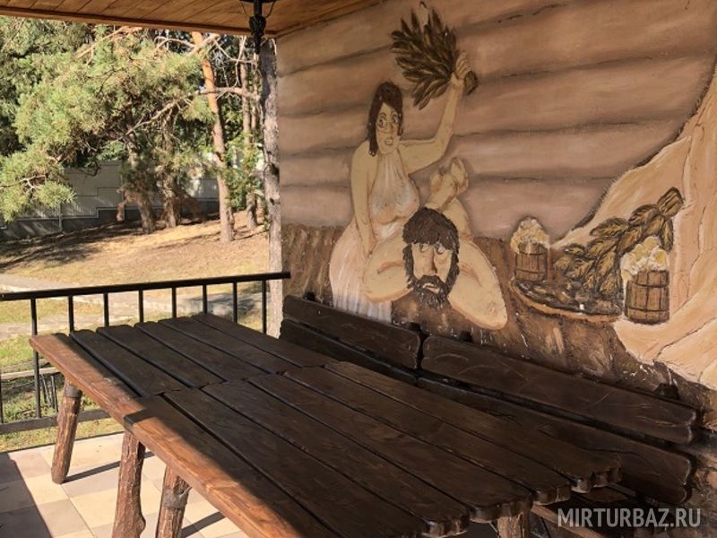 К услугам гостей комплекс деревянных домиков и беседок, баня, сауна, пруд для рыбалки и купания. В отделке беседок и коттеджей использованы натуральные материалы – дерево и камень. Территория озеленена и благоустроена.