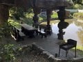 - теплая кирпичная беседка на берегу пруда с мангалом, обеденным залом, камином и пикниковой площадкой;