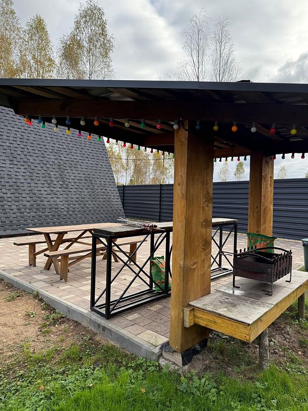 Читать полностьюБеседка открытого типа, подойдет как для небольшой компании, так и для компании до 25 человек. Вокруг беседки территория из брусчатки, есть место для установки звукового и прочего оборудования, и, конечно же, для танцев. Рядом с беседкой расположена зона для барбекю с мангалом, рабочей поверхностью и раковиной — удобно вымыть и нарезать продукты. Шампура, решетку, уголь и розжиг предоставляются за дополнительную плату.