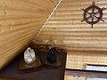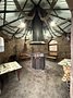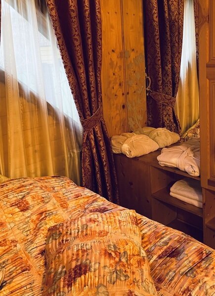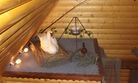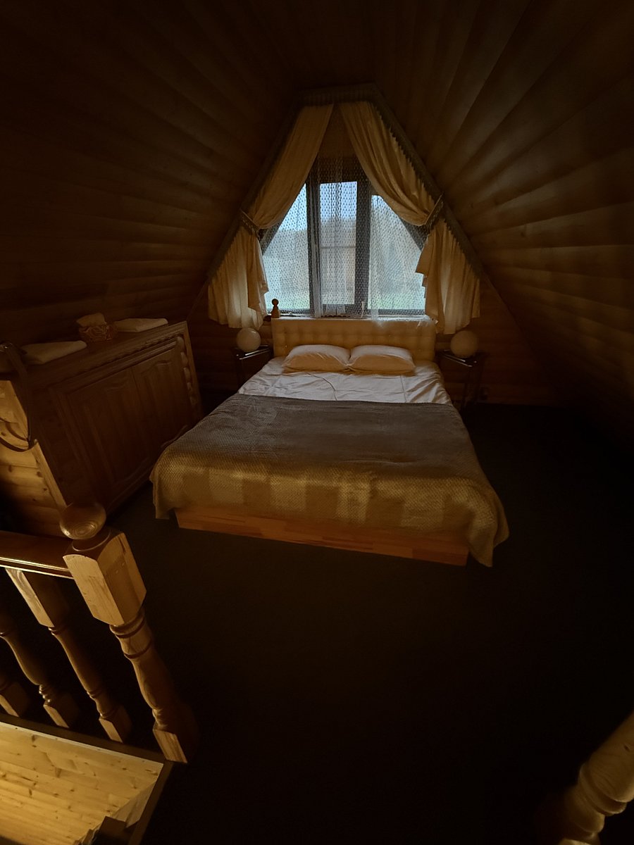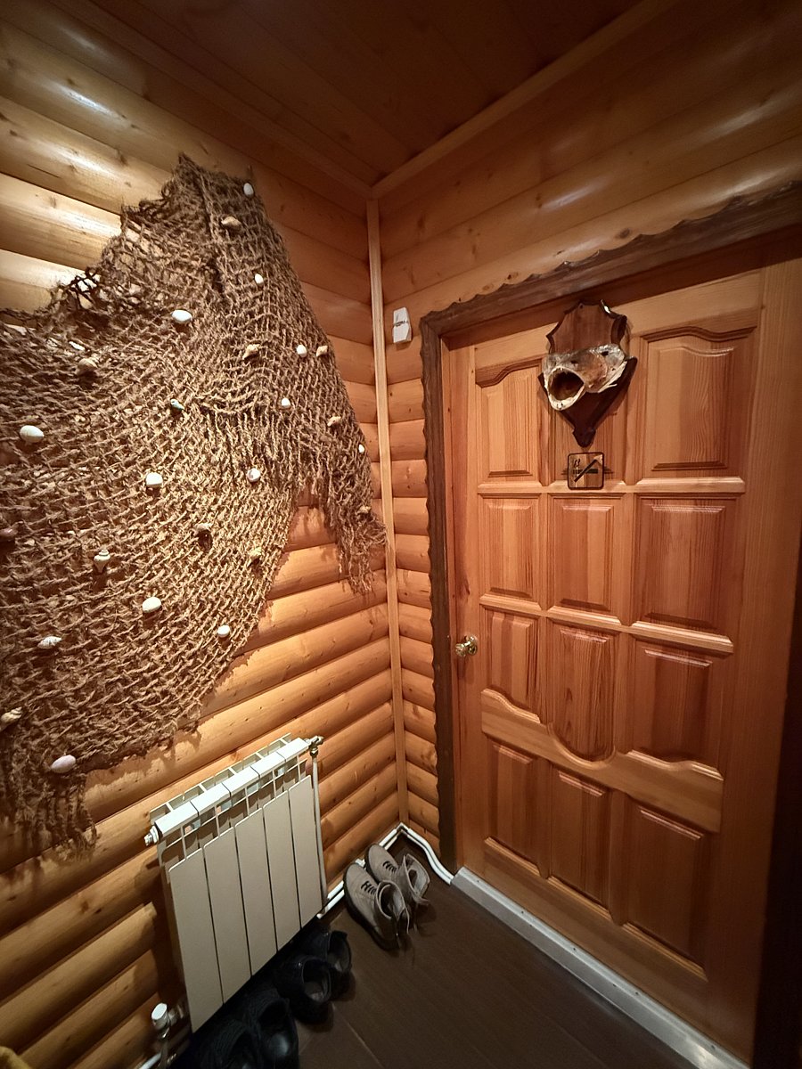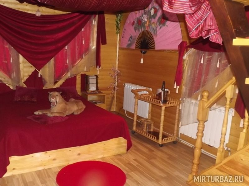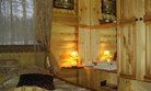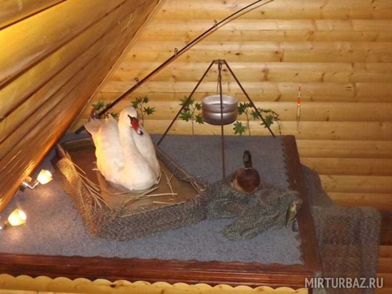 Две комфортабельные двуспальные кровати позволят Вам разместиться со всеми удобствами и обеспечат спокойных и глубокий сон. Оформление домика полностью соответствует тематике – развешенные на стенах шкуры диких животных, а также голова лося – прямое тому доказательство.