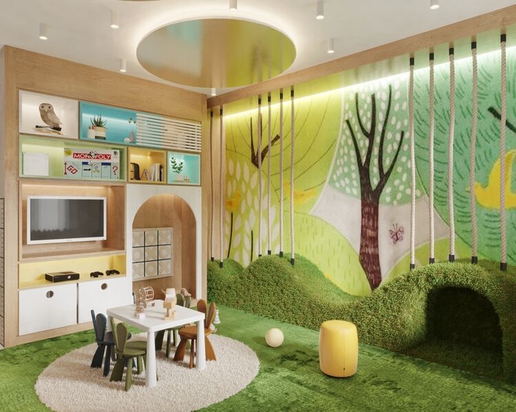 Детская игровая площадка находится в непосредственной близости с веревочным парком, что позволяет сделать семейный отдых наиболее активным и интересным.