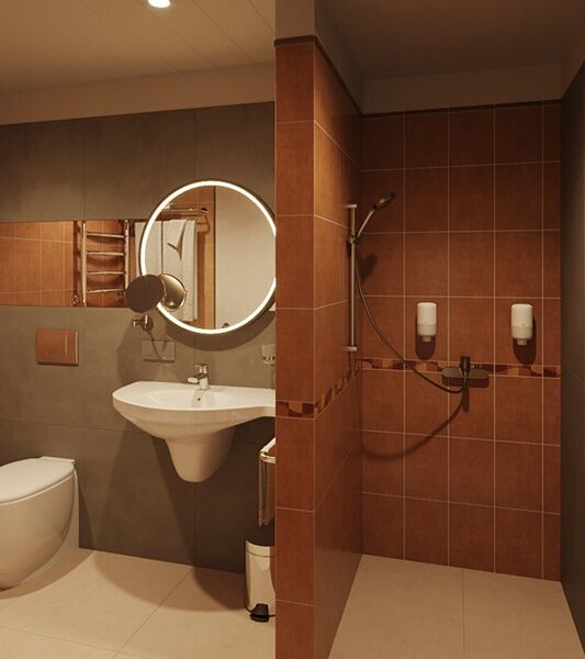 Санузел с душем, ТВ, мини-холодильинк