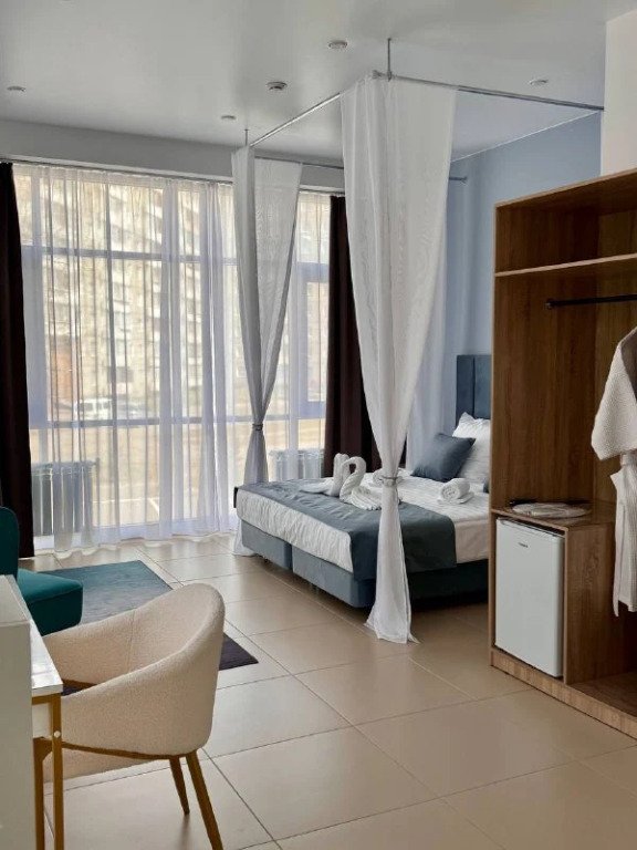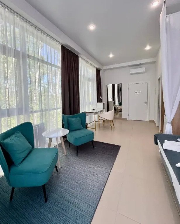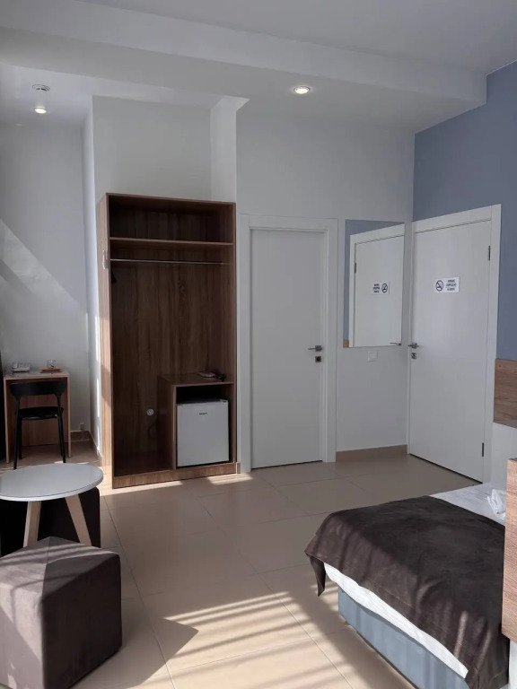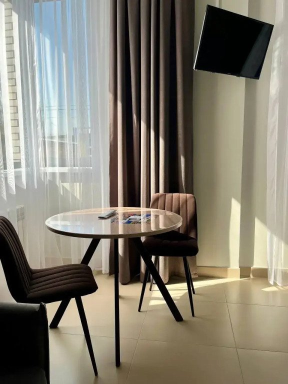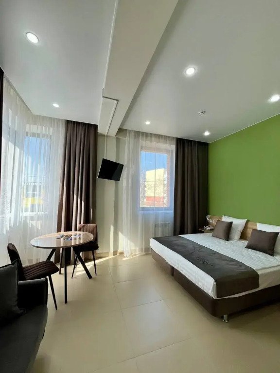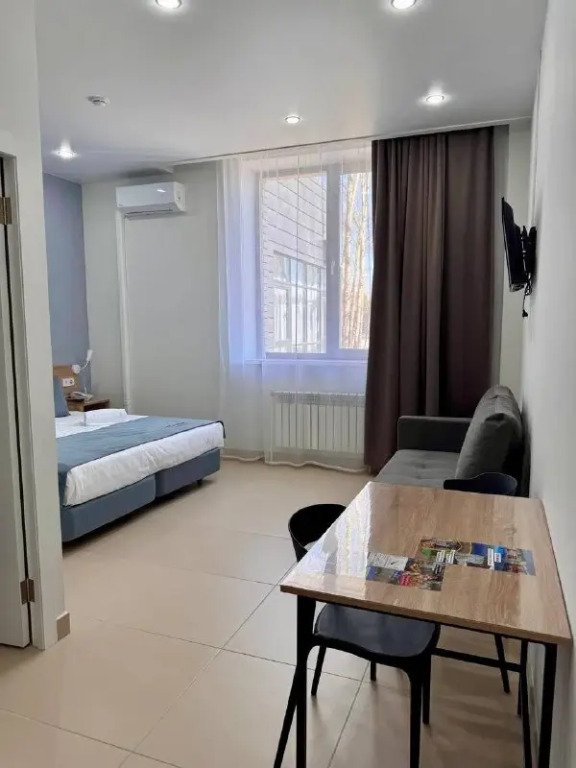 Номер уютно обставлен и оснащён необходимым, чтобы отдохнуть после долгого и насыщенного дня. Имеются телевизор и халат. Перечисленные услуги есть не во всех номерах.