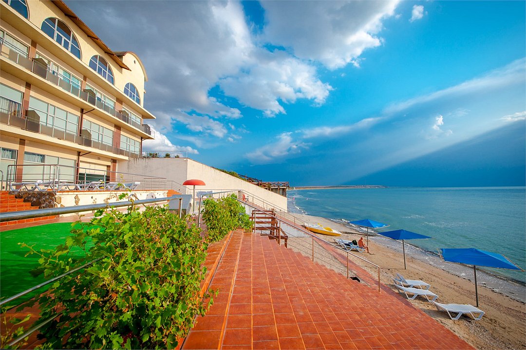 Наш отель расположен на берегу теплого Азовского моря вблизи Казантипского природного заповедника. Наша команда заботливо создает уют для комфортного отдыха наших гостей круглый год. Для Вас всегда открыты бассейны, фитнесс залы, ресторан авторской кухни, СПА-зона, зона реабилитации и восстановления. В мини-зоопарке Вас порадуют белочки и еноты. А наши невероятные закаты добавят ярких впечатлений от отдыха.