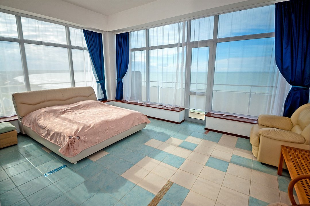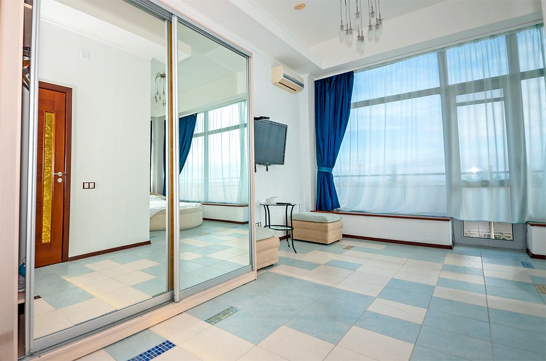 два телевизора, Wi-Fi, фен, ванна, теплый пол, халаты, банные полотенца, пляжные полотенца, тапочки, гигиенические средства, косметические средства, балкон с красивым видом, кровать «King size», шкаф для одежды, журнальный столик, пуфики, две комнаты, обслуживание номеров, информационная карта, меню, сейф, унитаз, питьевая вода, отопление, душ, вид на море, кулер на этаже, плиточное покрытие, две спальни, высокие потолки, стаканы, столовые приборы, две ванные комнаты, туалетный столик, туалетные средства, сплит-система, мангал, принадлежности для барбекю, панорамные окна, сушилка для белья, диван-кровать, мини-холодильник, гостиничная парфюмерия, теплые полы, собственный бассейн, общественный бассейн, онлайн-регистрация до заезда, фитнес-зона, фумигатор, межкомнатная дверь, уборка номера, услуги прачечной (платно), вешалки-плечики, СПА, собственный бассейн с подогревом, мыло, окна от пола до потолка, прачечная (за дополнительную плату), онлайн-регистрация, можно с питомцамиВ номере