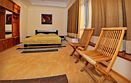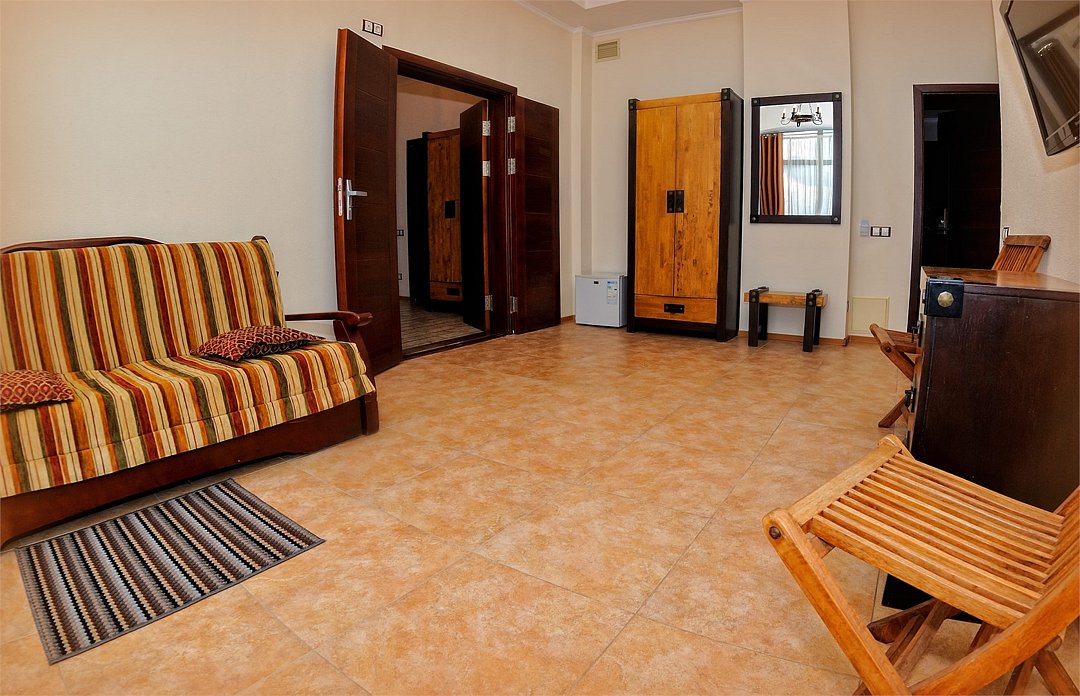 Просторный номер с видом на парковую зону отеля. Имеет собственный вход. Расположен на первом этаже основного корпуса. В номере есть все необходимое для комфортного отдыха. В номере может разместиться до пяти гостейУслуги и удобства