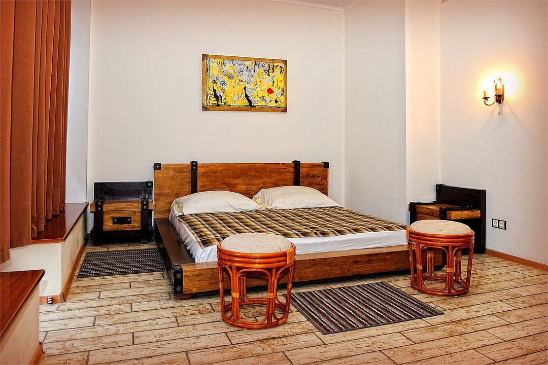 Двухкомнатный номер "Райский сад" расположен на втором этаже основного корпуса отеля, с видом на уютный и ухоженный внутренний дворик. Номер оформлен в индивидуальном авторском стиле. В каждой комнате отдельный санузел с ванной и душевой кабиной. В номере: кровать двуспальная, диван двуспальный, телевизор, холодильник, кондиционер, сейф. В "Райском саду" мы создали для Вас романтическую атмосферу, в которой Вы сможете отдохнуть и расслабиться сполнаУслуги и удобства