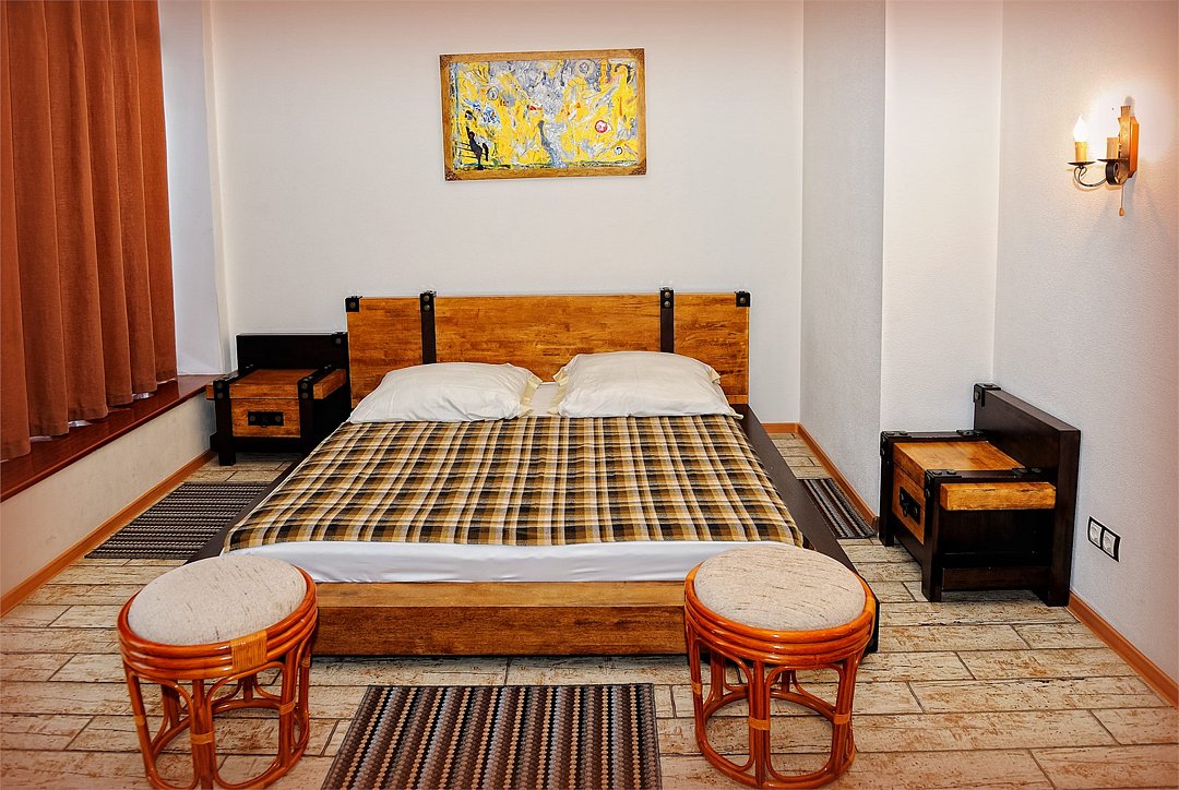 Двухкомнатный номер "Новая деревня" расположен на втором этаже основного корпуса отеля, с видом на уютный и ухоженный внутренний дворик. Номер оформлен в индивидуальном авторском стиле. В каждой комнате отдельный санузел с ванной и душевой кабиной. В номере: кровать двуспальная, диван двуспальный, телевизор, холодильник, кондиционер, сейф. В "Новой деревне" Вы ощутите комфортную деревенскую атмосферу и сможете отвлечься и отдохнуть от городской суеты.Услуги и удобства