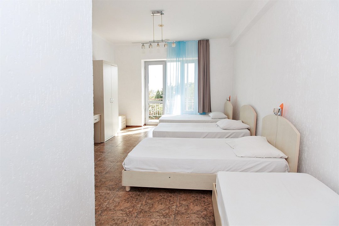 Уютные номера с четырьмя раздельными кроватями. Холодильник, телевизор, кондиционер. Санузел с душевой кабиной.Услуги и удобства